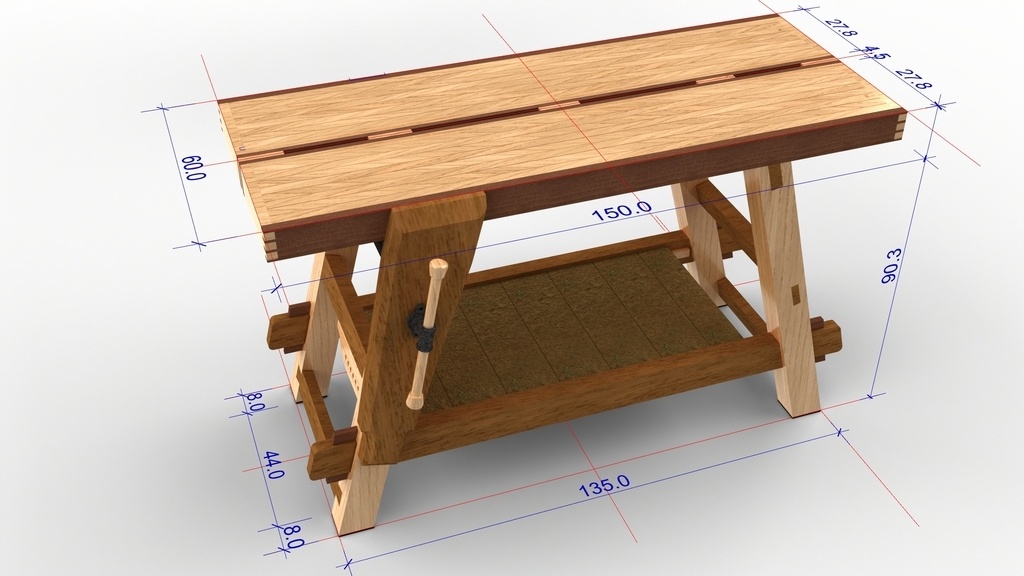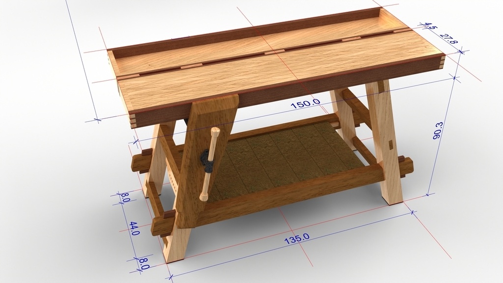 De mon côté, je pensais utiliser des dominos. Mais je pars sur un établi type Roubo, avec en plus une traverse haute pour renforcer l’ensemble.