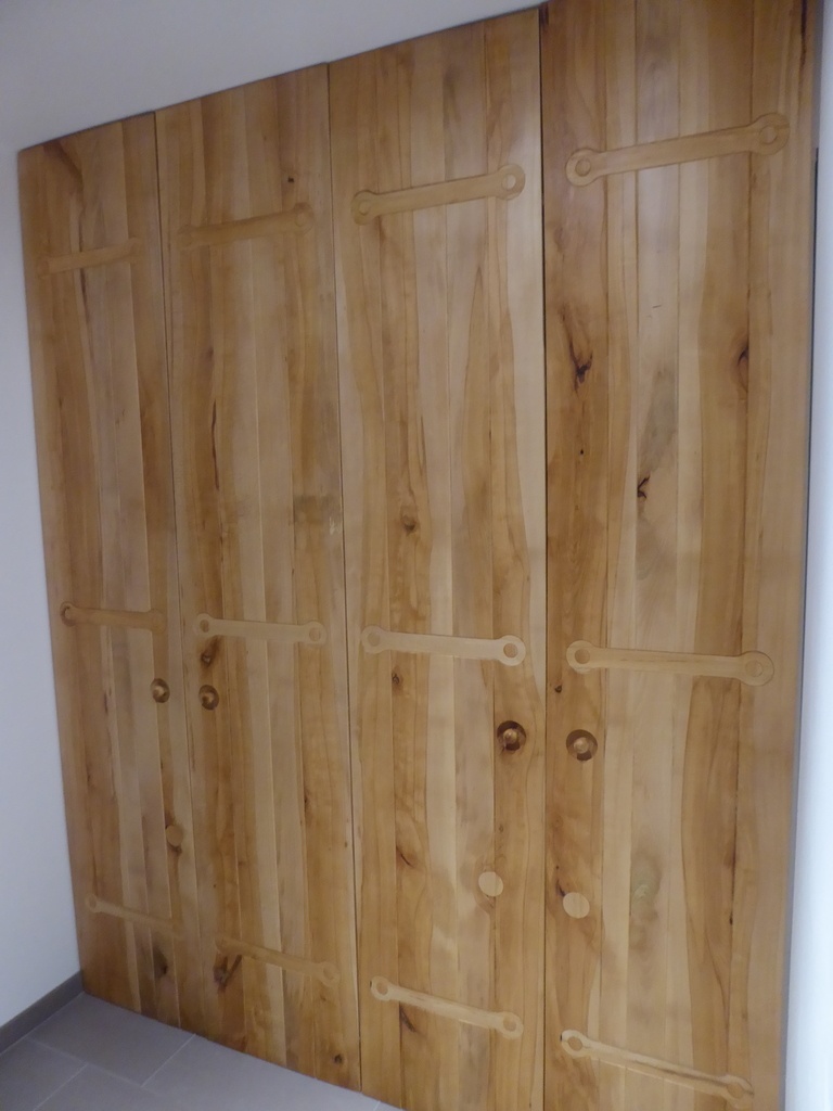 Tu as quand même pris des risques avec du hêtre massif sans cadre pour des portes aussi grandes. Les déformations auraient pu être très importantes. J'espère que ça va tenir :)
