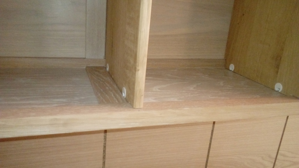 Le cauchemar a ete la finition a l huile dure teintee,24 h entre passes,probleme d homogénéité de teinte,15 j de delai livraison...c est le gros point noir.