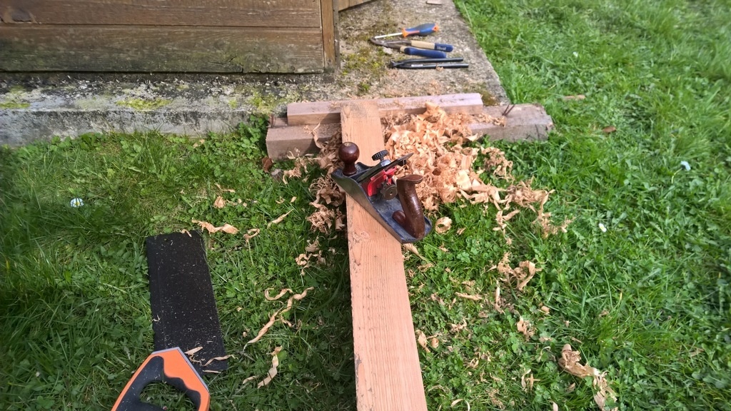 J'ai donc commencer par rechercher tout les éléments pour faire l'établi et les ais délesté de quelque clous et mis à une longueur convenable, et fait une petite séance de rabotage ^^.