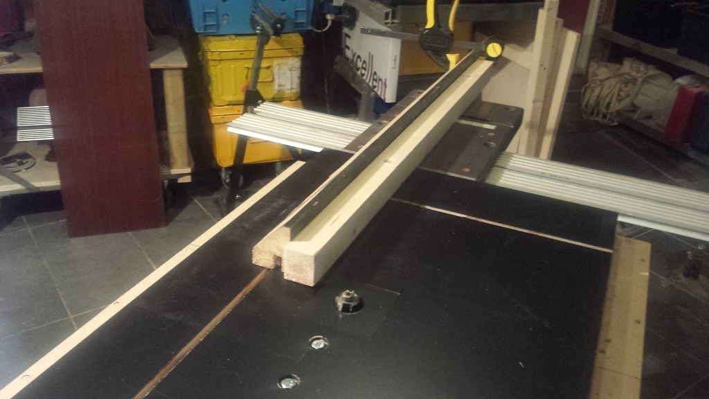 En allant chercher le bois pour fabriquer le meuble, je suis tombé sur le rail de ma scie sous table que j'avais laissé dans un coin.