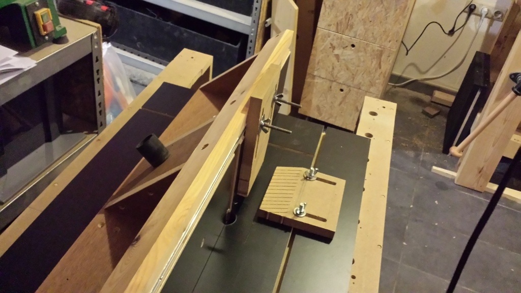 Je viens de commencer l'étude réglages et fixé sur une ancienne table de nuit, histoire de me faire la main et pouvoir l'utiliser provisoirement.