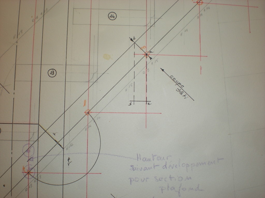 bonjour je suis admiratif en voyant les épures cela me rappelle des souvenir d enfance lorsque je travaillais sur les épures du mazerolle c' est de l histoire ancienne il y a bien longtemps que j ai compris que l' on ne vendait pas ses épures avec l' escalier et je me passe d' épure pour réaliser mes pièces compliquées. je part écrire dans ma campagne et j enverrai le livre a mon retour. continuer à dessiner il me reste encore du calque qui est insensible aux variation hygrométrique et mon jeu de tire ligne