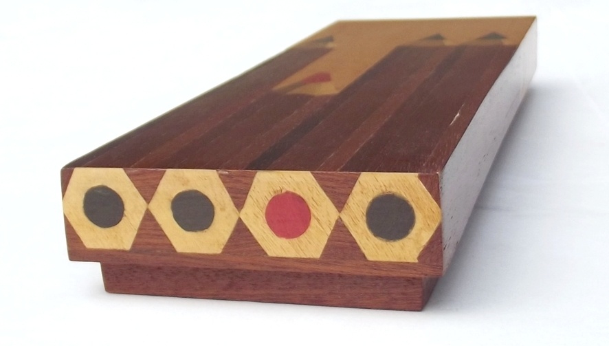 Le panneau arrière est plaqué de quatre hexagones sur un fond de sapelli.