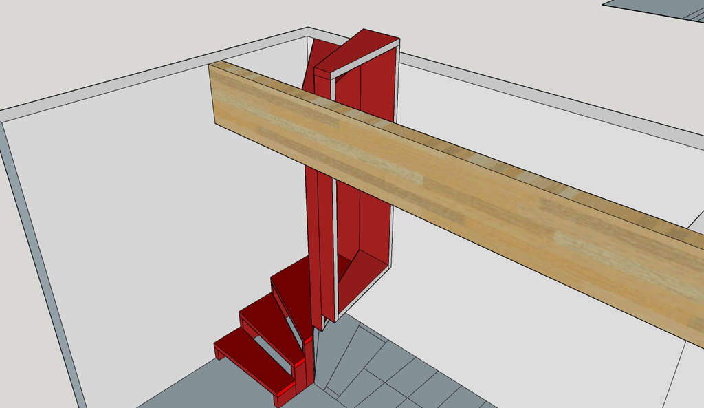 la première question qui me vient c'est à propos de l'orientation du bois pour le marches ... si je comprends bien ta remarque ca veut dire que les fibre du boios seront parallèles à la ligne de foulée, intuitivement je les aurais tourné dans l'autre sens pour avoir les fibres en long et augmenter la solidité. Qu'est-ce que je n'ai pas compris ?