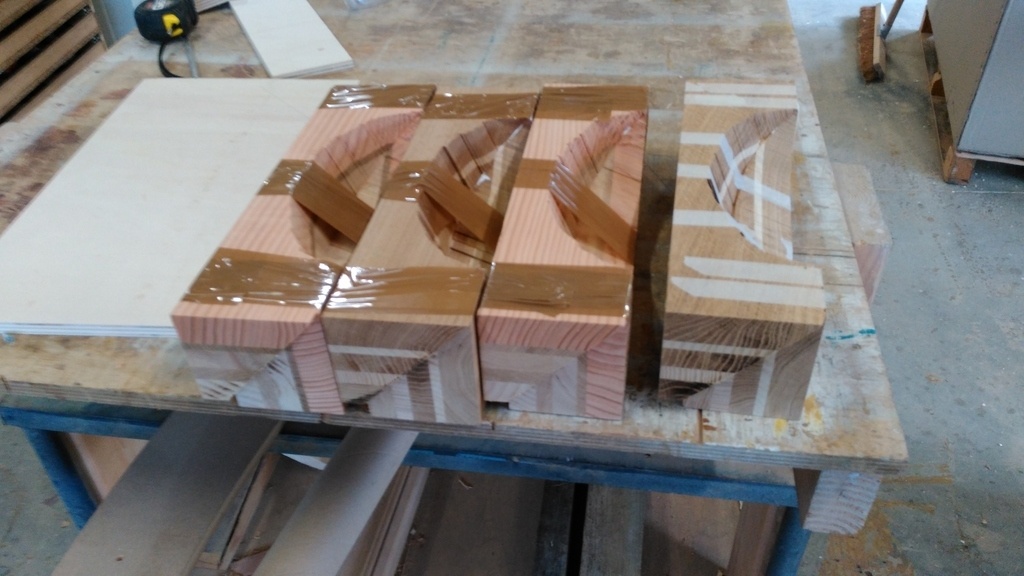 J'ai ensuite évider l'intérieur à la scie à ruban puis j'ai collé les morceaux afin d'avoir 4 quartiers.