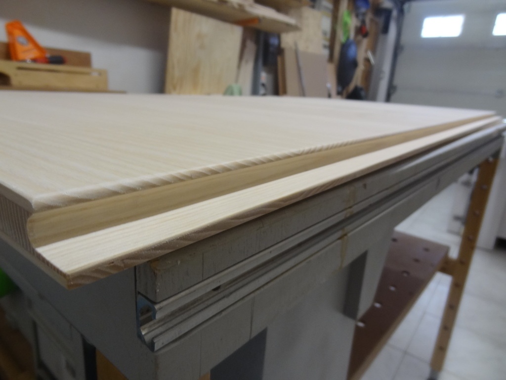 La différence avec les précédentes portes, c'est qu'ici seront usiné des poignées sur le haut et sur le côté de la porte. En effet ayant des enfants, il me paraissait compliqué pour eux d'ouvrir la porte uniquement par le haut.