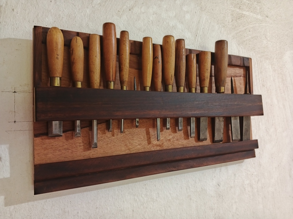 - 3 manches en buis. Les 2 premiers de forte section (pour un ciseau très épais et un ciseau-bédane), le suivant est plus plat, très agréable pour travailler à la main;