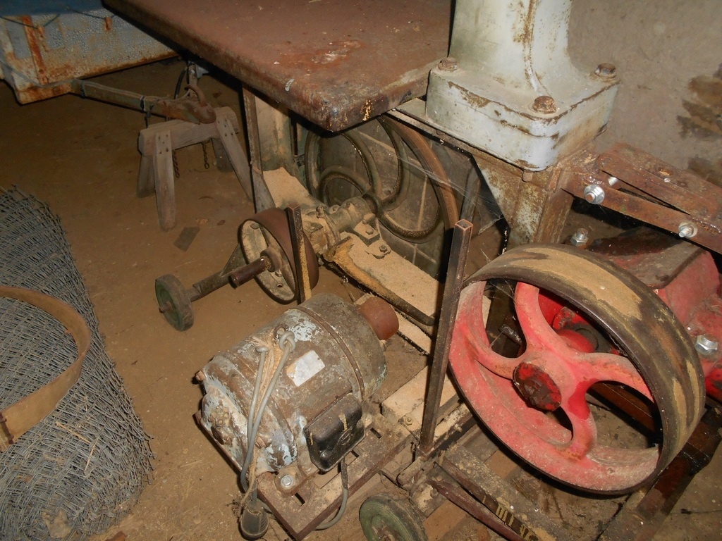 Salut, c'est marrant que tu dises ça, car quand on la ressortie avec mon père j'ai eu le même effet ! J'ai donc pensé qu'elle avait été modifiée, mais selon mon père, à part les roues et le mécanisme rouge, rien d'autre na bougé (et oui, j'ai bien supprimé cet attelage, je compte m'en servir uniquement à l'atelier). Pour la petite histoire, ces scies était vendu par pièces. En me renseignant un peu, j'ai trouvé cette image ou on voit clairement la même structure ! (hors mis la disposition du moteur, elle ressemble à celle en haut à droite) Mais pour l'avoir déplacé, et avoir bossé dessus je peux te garantir qu'elle ne bronche pas ;) Je suis content car demain je devrai recevoir la nouvelle courroie ! Par contre je ne pourrai pas m'en servir avant quelques semaines, je me suis blessé avec ma dégau.. 2 points de suture.. 'Fra gaffe la prochaine fois !