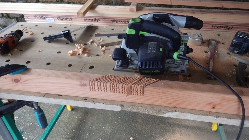 Ensuite découpe des tenons (à la scie au début puis à la circulaire)