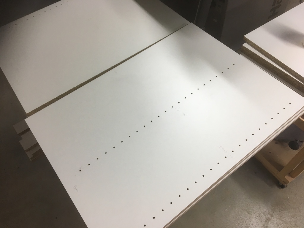 Usinage des charnières de portes , et positionnement sur les pistes perforées. Maintient avec des vis euro
