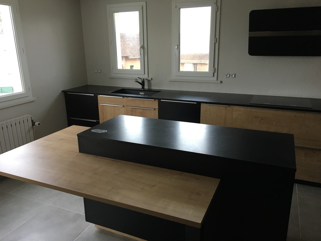 La chose pour laquelle nous étions d’accord était le désir d'intégrer une cuisine de style comptemporaine avec des lignes épurées. Le mélange bois et noir s’est imposé. La réflexion du projet s’est articulé à partir de l’existant, peu de possibilité d’ouvrir la pièce sur le reste de la maison sans faire appel à du très gros oeuvre.
