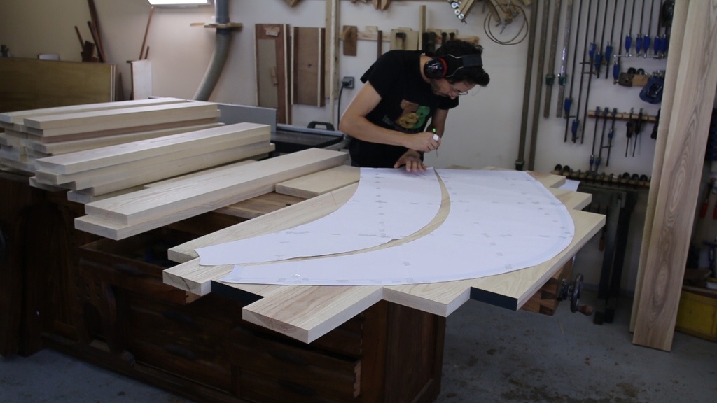 L'escalier comporte deux éléments courbes qui vont nécessiter la mise en oeuvre des techniques de débillardé. Dans cet article je commence par mettre en forme le limon courbe. C'est la pièce la plus facile des deux pièces courbes de l'escalier !