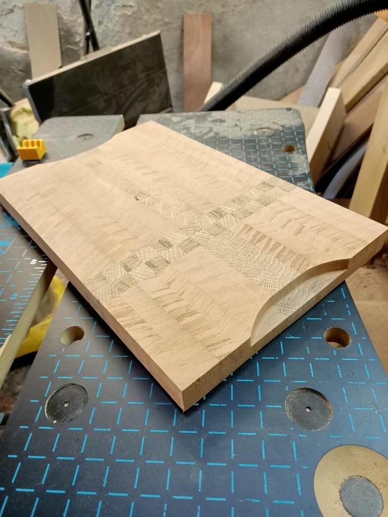 C'est un cadeau de coeur, qui lui fera plaisir, je n'ai aucun doute là dessus. Aussi, avec mes compétences actuelles, c'est un véritable défi. Je me suis fait la main avec une première petite planche à découper, et ça c'est globalement bien passé. C'est parti !