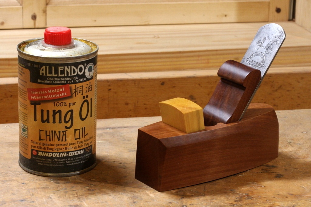 Pour donner à ce bijou un peu d'éclat, je le ponce et couvre avec un mélange (50/50) de l'huile de Tung et de White Spirit. Le lendemain, je rajoute encore une couche de l'huile de Tung pur. Voici le résultat.
