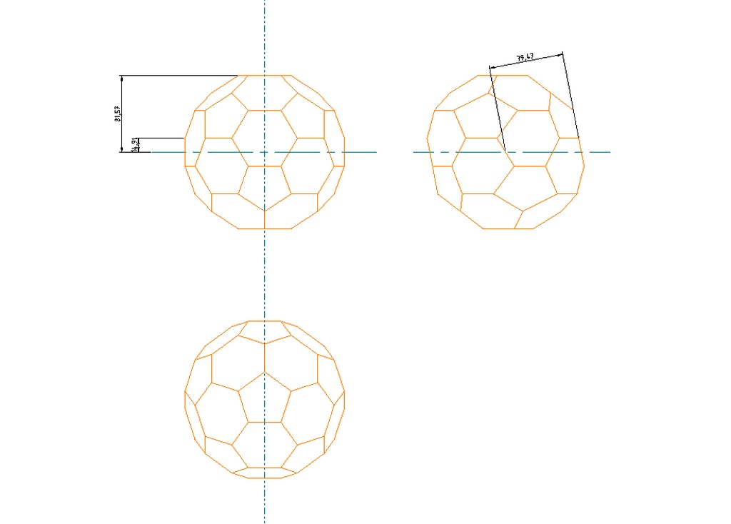 Concevoir des géodes à partir d'icosaèdre tronqué est certes possible, on peut en effet diviser les pentagones et hexagones en petits triangles, que l'on projette ensuite sur le sphère circonscrite. C'est possible, mais ce n'est pas le plus simple... (voir le dessin ci-joint). Partir de l'icosaedre de base est bien plus simple. Et de tout façon, on finit par la même technique, la projection des sommets sur une sphère...