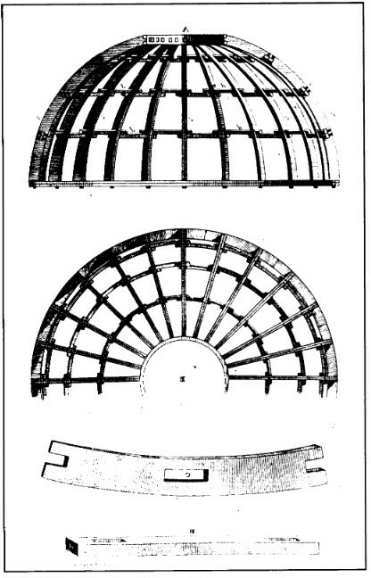 Mais il y a quand même un menuisier célèbre -entre autres- pour une coupole, c'est André Jacob. Mr Roubo avait fait la Coupole de la Halle aux Blés de Paris. Elle fut détruite et reconstruite en bois. C'est pour l'histoire, parce que je ne sais pas si on peut retrouver des informations sur la méthode de construction.