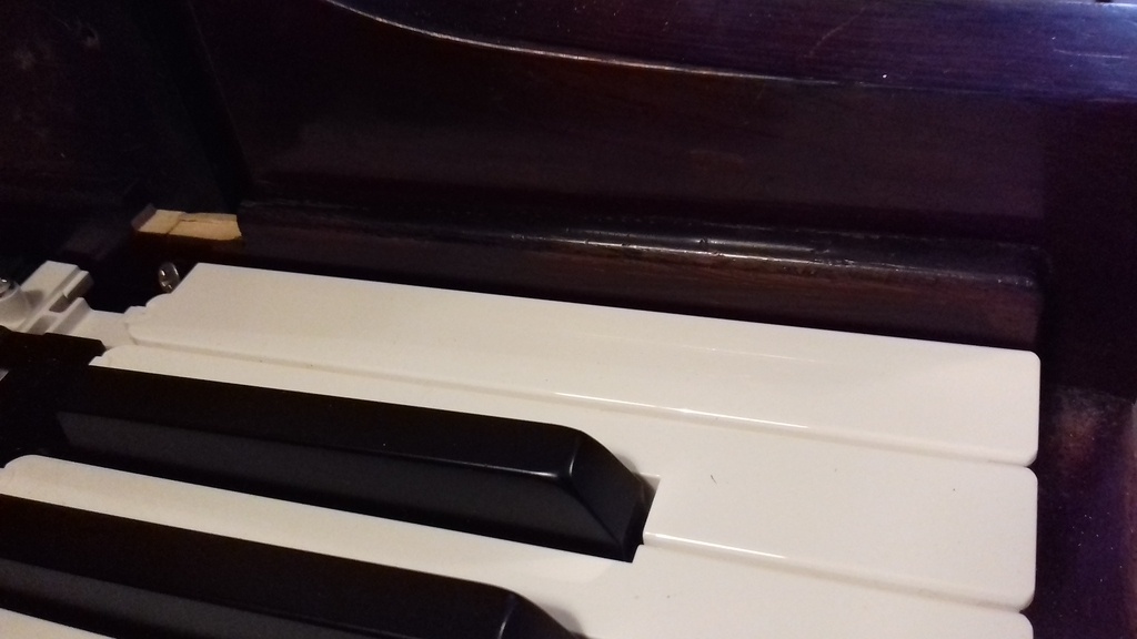 En dehors des problèmes d'accordage, le piano a beaucoup souffert : de nombreuses touches sont complètement tordues et auraient demandés à mon avis un travail important de restauration. Ma femme et moi qui ne sommes pas pianistes avons pris la décision de cette transformation avant tout pour que les enfants puissent simplement s'amuser avec un instrument qui sonne juste et qui ne nécessite pas d'entretient régulier car l'utilisation est vraiment très occasionnelle.