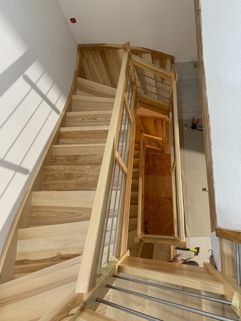 Ce chantier en ce qui concerne les escaliers voilà 2 ans que le petit droit a débuté, les quatre autres ont été entrepris il y a plus d'un an. C'est un chantier à longue haleine sachant que le propriétaire des lieux à entrepris cette rénovation extension voilà plus de 10 ans seul et parfois aidé. Ce sera l'œuvre de sa vie.