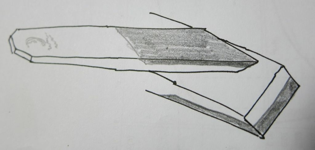 • l'embouchure en forme de trémie où l'on coince l'outil tranchant (le fer);