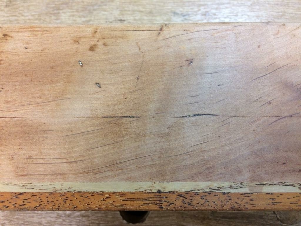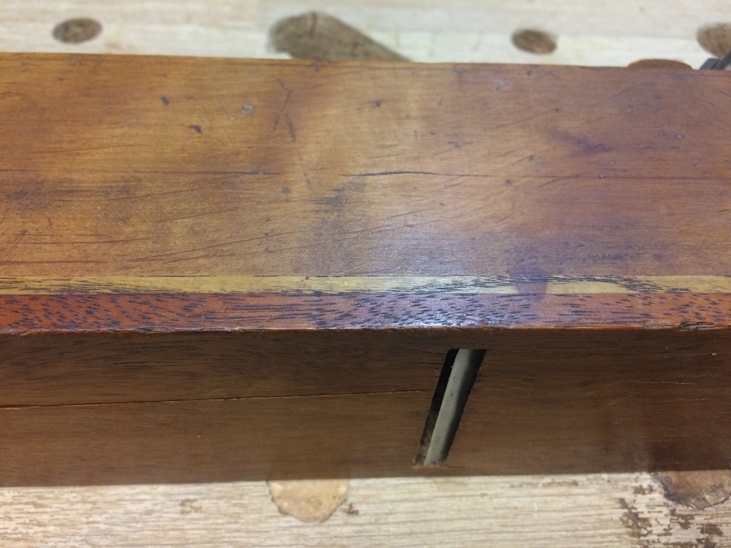 Bien entendu, avec de vieux rabots il faut les décrasser avant de pouvoir examiner la couleur du bois. Pour cela, je conseille d'utiliser un racloir: c'est peu agressif et cependant cela permet de retrouver rapidement l'éclat d'origine.