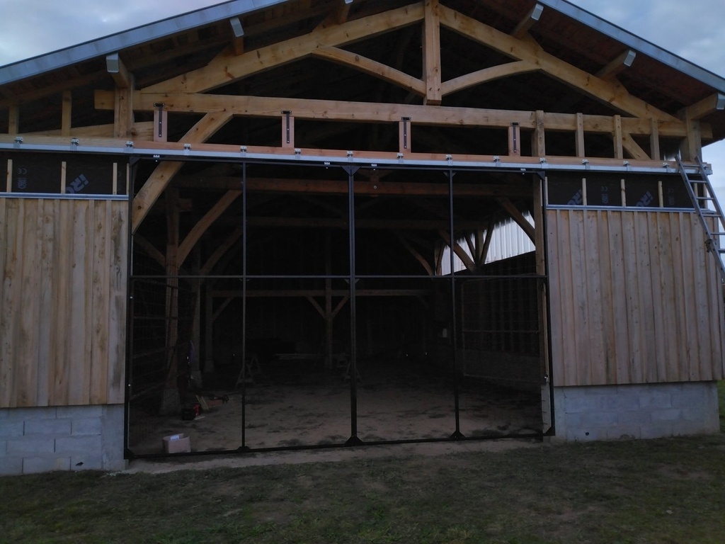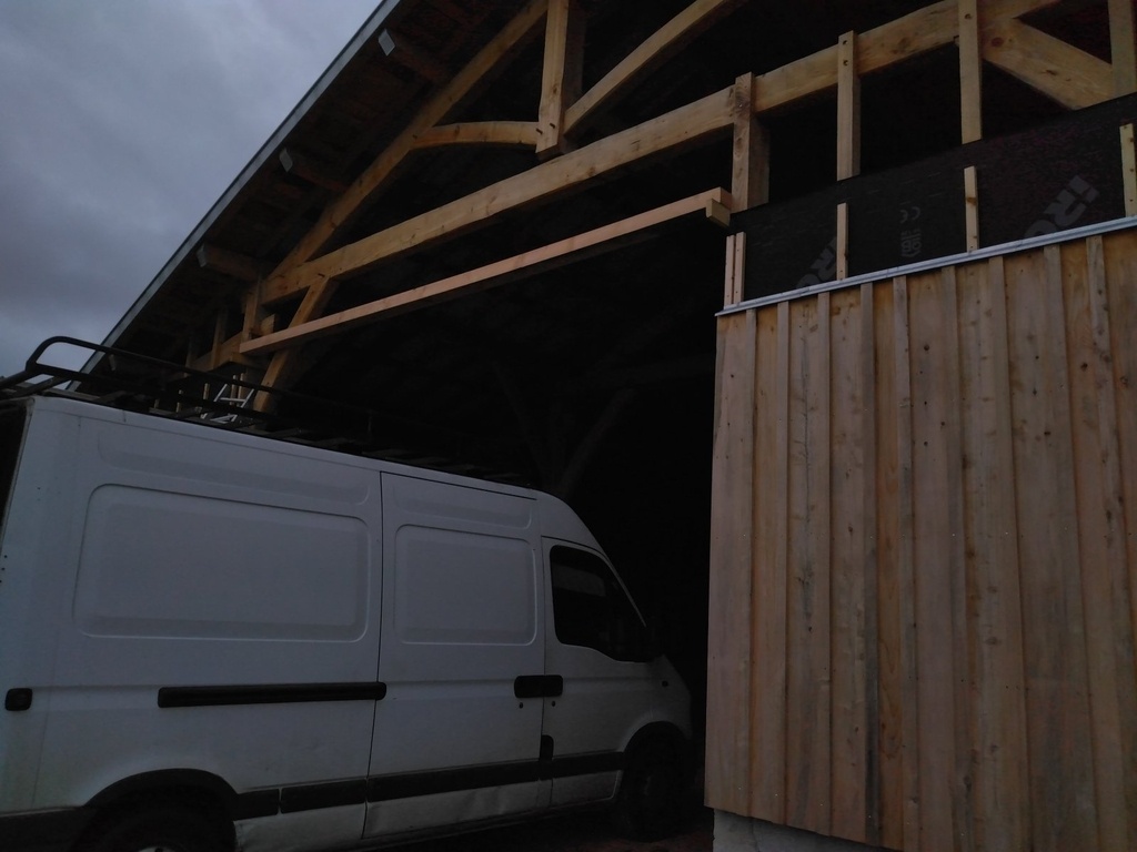 La dernière ferme du pignon, j'ai dû faire un poteau de 5m40 avec deux de 2m50, et deux chutes de pannes qui traînaient dans l'atelier.