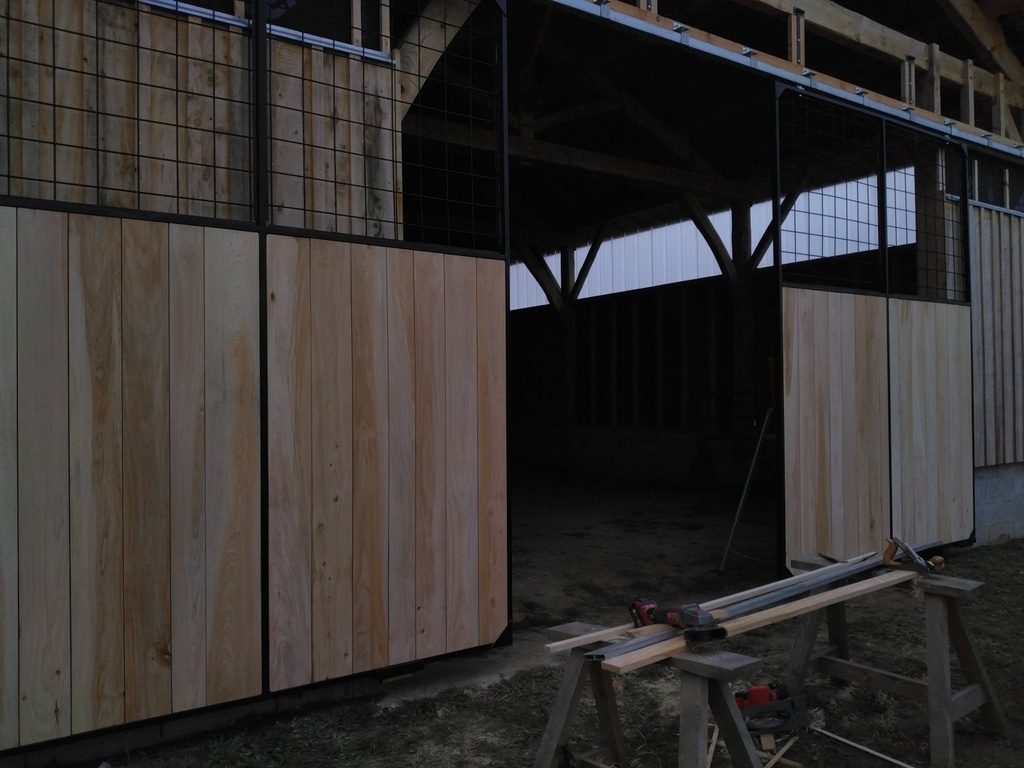 J'ai la chance d'avoir mon voisin le plus proche ancien débardeur à la retraite , il a pu me ramener tout ça sur le terrain avec son Volvo. Lorsque j'ai voulu lui donner la pièce il a refusé, il m'a demandé si je pouvais lui refaire un volet en contrepartie.