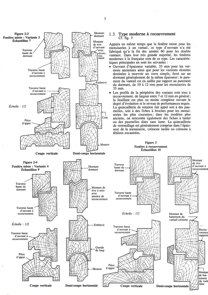 Sur ce document on peut voir l'évolution de la croisée traditionnelle en 30 mm d'épaisseur vers une recherche d'étanchéité dans les années 70.
