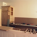 Modélisation d'une cuisine équipée réalisée en bois massif et assemblages traditionnels.