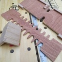 Pour la confection d'un gabarit à queue d'aronde, j'ai consulté pas mal de ressources sur internet (Copeaux du Berry, Cray Birkenwald, Samuel Mamias ...) et c'est la première fois que je note une particularité spécifique à la solution de Ukinoki : le décalage correspondant à la moitié du pas intercalé entre les 2 rangées d'entailles (queues d'aronde et contre-queues) qui se font face. Tous les gabarits DIY que j'ai pu consulter présentaient un alignement des 2 rangées d'entailles.