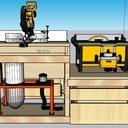 Ayant fait l'acquisition d'une scie table DEWALT 7492, qui possède un rail de chaque coté de la table de sciage, on peut y adapter un petit montage pour y fixer une défonceuse en position sou-table.