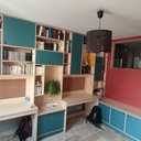 Plan d'ensemble, par module et éclaté + plan de débit de panneaux de l'agencement bureau bibliothèque en CP bouleau ép 18 et 9mm.