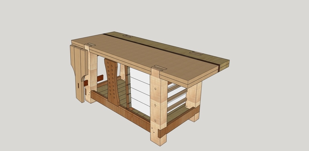 Bonjour. C'est en opposition au plateau en hêtre lamellé collé de chez LM, à la partie du plateau en chêne fait à partir d'un vieux plateau d'atelier, aux pieds en chutes de charpente épicéa contre collé. Bref un peu de tout dans cet établi.
