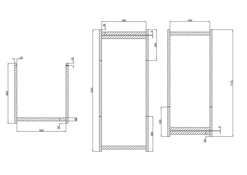 Ceci est le plan de la chilienne. Les éléments ont une section de 35 mm x 25 mm.