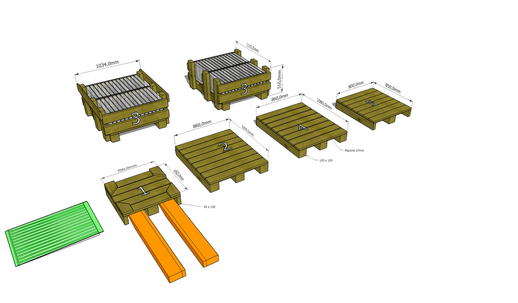 Quelques palettes très basiques, avec des dimensions sur-mesure bien précise pour un laboratoire de transformation d'une apicultrice professionnelle.