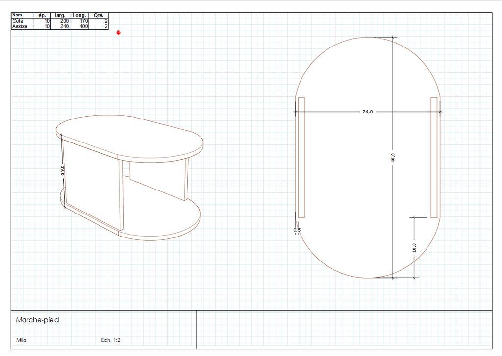 Sur la réalisation je suis finalement partie sur une épaisseur de Chêne de 12 mm contrairement au plan.