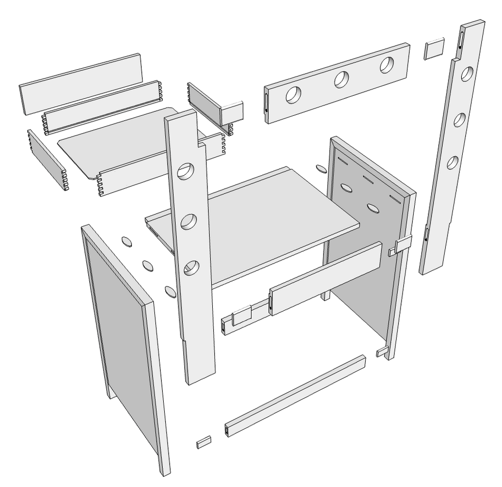 La forme de la table est assez simple. Elle est assemblée avec des lamello et des faux tenons.