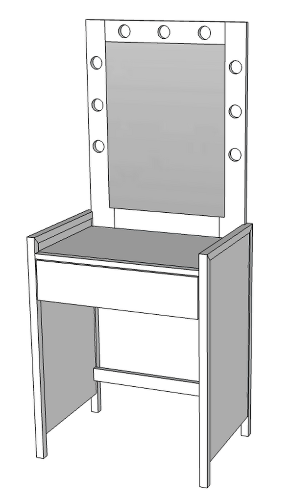 Voici les plans d'une coiffeuse réalisée pour ma fille.