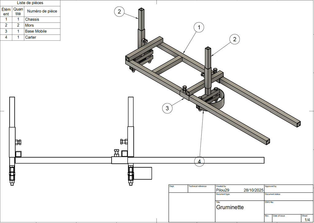 Les plans cotés d'une gruminette que j'ai modélisé sur Fusion 360.