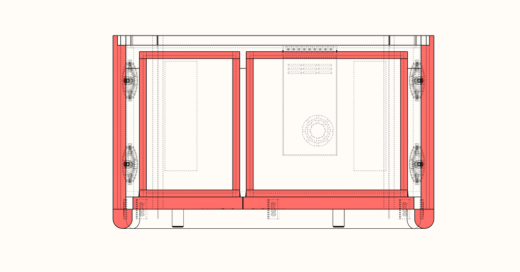 Les 2 tiroirs sont réalisés en frêne massif et assemblés à queues d'arondes. Les façades sont rapportées.