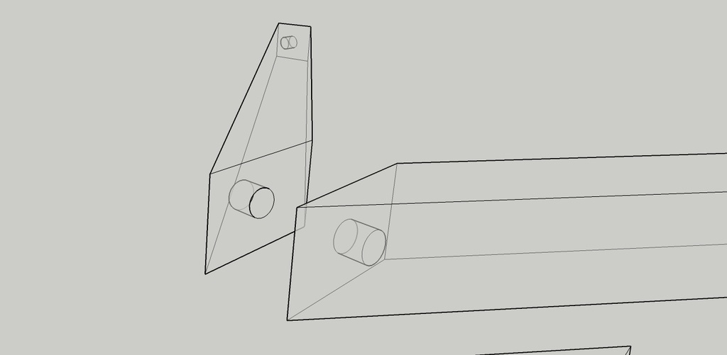 Les tasseaux entretoises sont des parallélépipèdes non rectangles, tronqués d'onglet aux deux extrémités. L'angle épousant l'inclinaison des montants est de 7 degrés. Assemblages par vis ou tourillons, plutôt que tenons/mortaise à cause de l'angle.