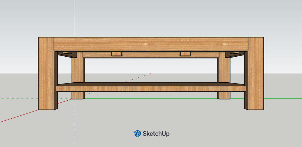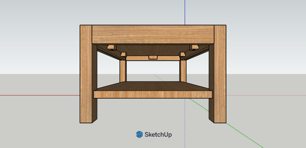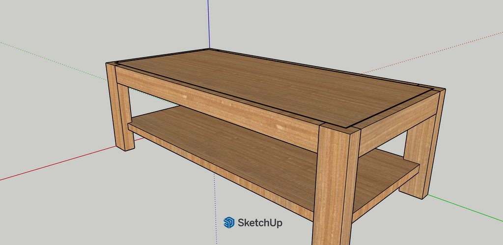 Voici le modèle 3D de ma dernière réalisation, une table basse en merisier et chêne, entièrement faite avec du bois de récupération.
