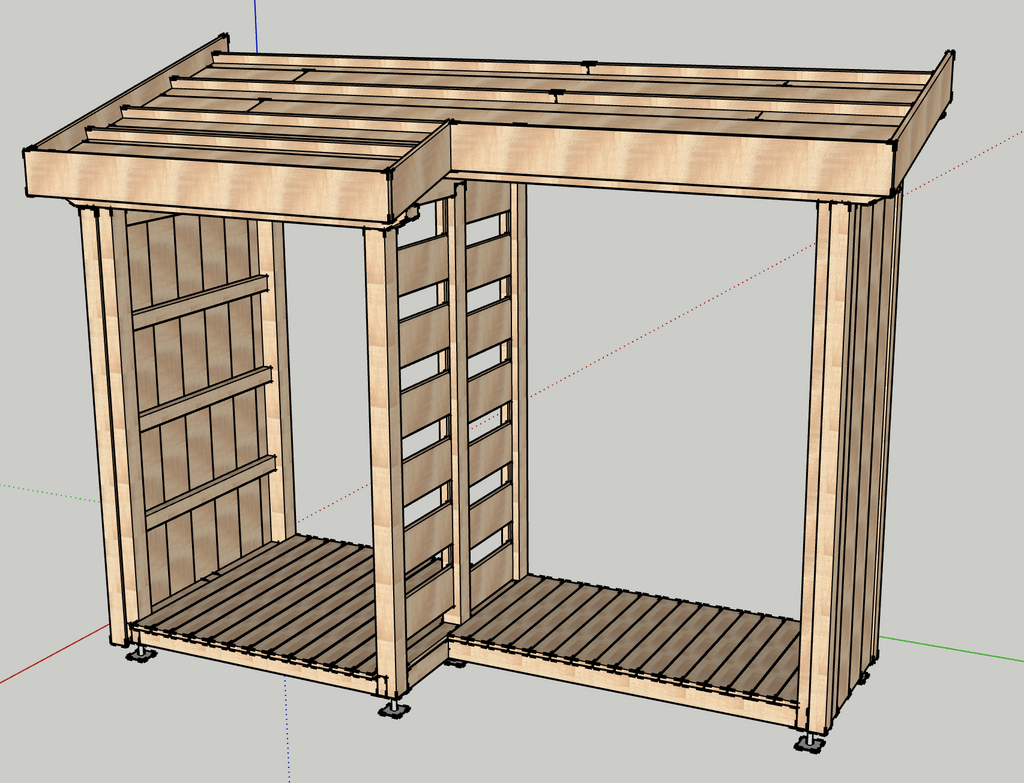 Un abri bûches pour accueillir à peu près 4 stères de bois avec une partie pour des bûches de 50 et l'autre en 33 cm.
