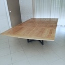La table d'1m60 x 1m60 repliée, 1m60 x 2m10 avec une rallonge et 1m60 x 2m60 avec les deux.