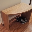 Aménagement d'une petite entrée avec un tabouret et deux tablettes murale