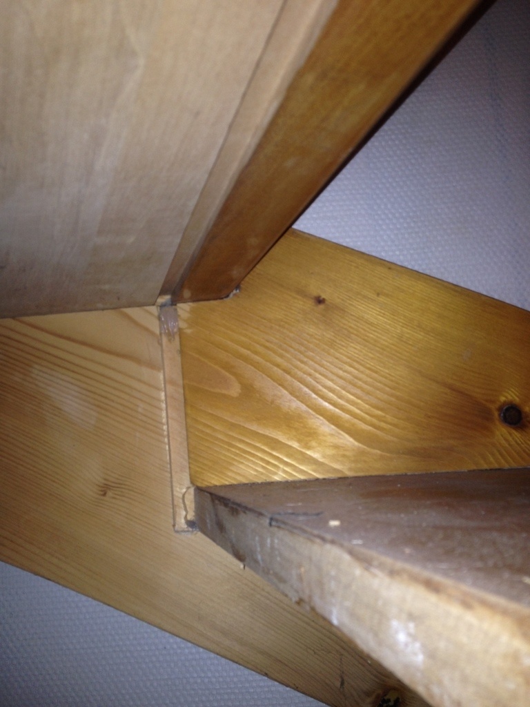 Ensuite j'ai coupé du contre plaqué pour deux contres marches et ça marche pas mal, ça grince toujours un peu mais c'est moins pire.