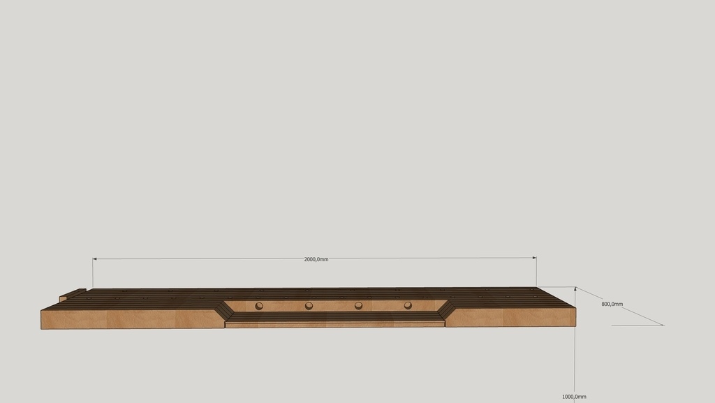 Je vais fabriquer un établi pour mon atelier de menuiserie et souhaite avoir de l'aide sur la partie conception. Je vous mets les plans SketchUP en photos.
