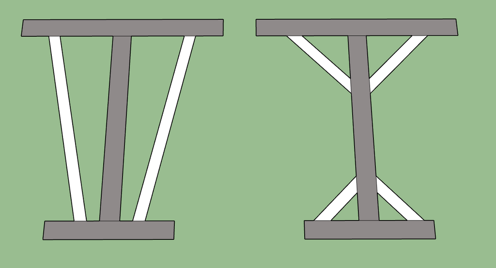 Je vais faire assez simple: ta solution de tes deux "liens" sur toute la hauteur ne crée pas de triangles. Donc pas de triangulation, donc pas de contreventement.