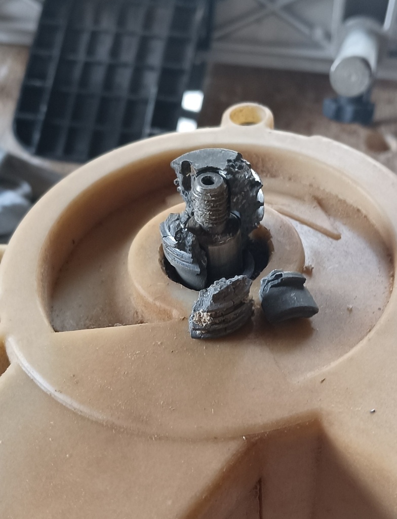Exactement le meme souci, l'alliage du pignon est pourri. J'ai été remboursé totalement par la société qui me l'a vendu car elle n'a plus de machine en stock pour remplacer la mienne. Je pense que les pignons sur aliexpress peuvent convenir en taraudant le trou central. A voir. A voir également pour retrouver une courroie à la taille mais il y a du choix au ali aussi. Ma courroie s'est bouffé sur l'axe quand l'engrenage a cassé.