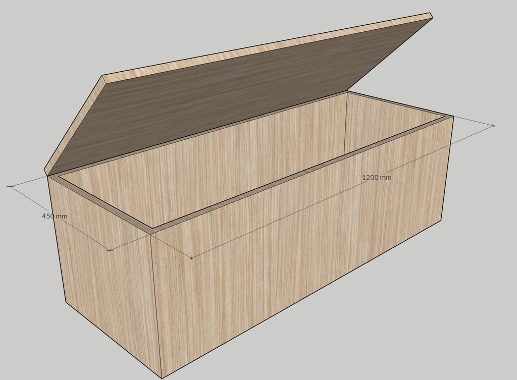 J'en ai fait un pour mes enfants. MDF très bien, facile à travailler et à peindre, mais ca pèse un âne mort. Il faut des vérins à gaz pour maintenir le couvercle ouvert. ('verin à gaz pour meuble' dans ton moteur de recherche préféré). Il en faut un de chaque côté. Et j'avais mis des butées de portes pour maintenir le couvercle à 1,5 cm du rebord, comme cela, pas de doigts coincés, même si le petit/grand frère/soeur s'assoie sur le couvercle ('butée porte caoutchouc' dans ton moteur de recherche préféré).
